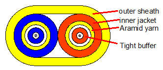 Flat duplex optical cable uses Φ600µm or Φ900µm compact fiber as the optical transmission medium. The compact fiber is wrapped in a layer of aramid yarn as the strength component unit, which is made of a layer of PVC or LSZH material, It is then made of a flat layer of polyvinyl chloride (PVC) or a low-smoke halogen-free material (LSZH low-smoke, halogen-free, flame retardant) jacket.