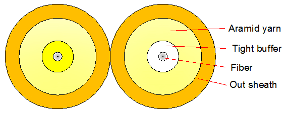 Le câble simplex utilise une fibre tampon serrée de Φ600μm ou Φ900μm comme support de communication optique. La fibre tampon serrée est enveloppée d'une couche de fil d'aramide comme unités d'élément de résistance, qui est la plus extrudée pour produire une couche de gaine (PVC) ou sans halogène à faible fumée (LSZH, à faible fumée, sans halogène, ignifuge).